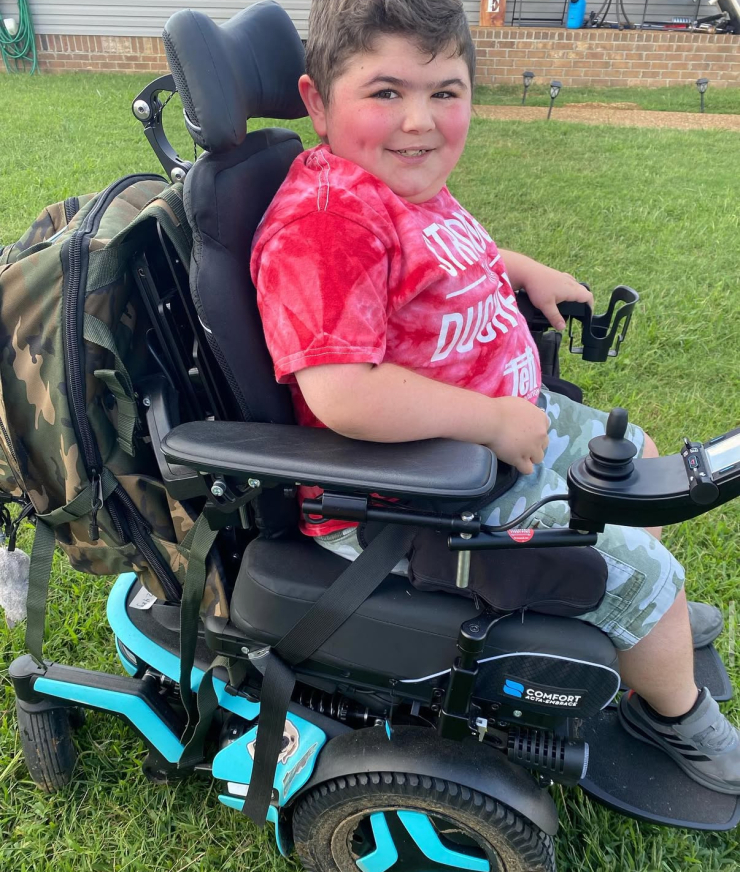 Duchenne affects every muscle in the body, including the heart. Because Aiden’s body cannot repair muscle damage, healthy muscle tissue is gradually replaced with scar tissue. Over time, this leads to stiffness, fatigue, weakness, pain, and loss of function. Aiden is now non-ambulatory and relies on mobility equipment for daily life.