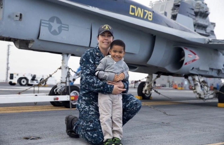 Her first assignment was aboard the USS Theodore Roosevelt, a nuclear-powered aircraft carrier stretching four football fields long — so massive it feels less like a ship and more like a city floating on water. She still remembers climbing the long flights of stairs to step aboard for the first time.
